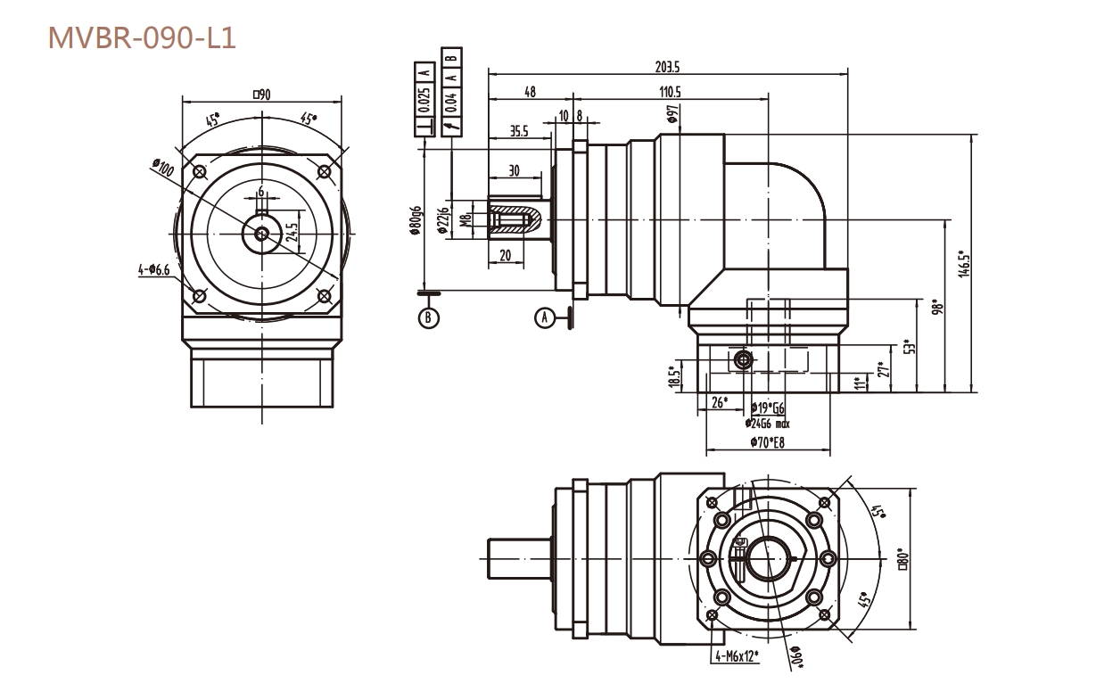 MVBR-090-L1系列精密行星減速器型號尺寸與圖紙